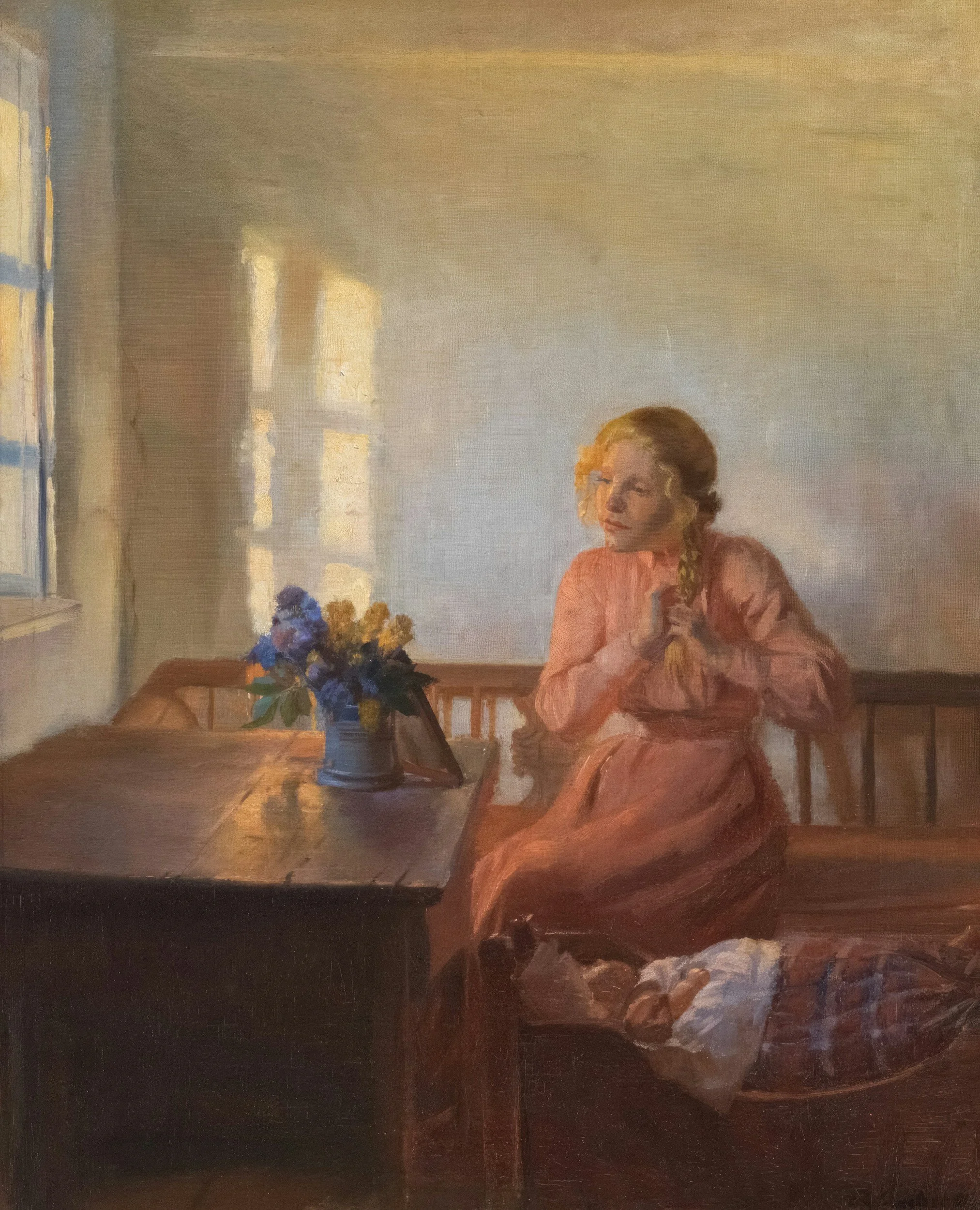 And then we found a Hammershøi. A Copenhagen interior. A woman with her back to us, always. Never her face. The nape of a neck. A half-open door. Cool grey light that somehow feels warmer than anything we'd seen on any property website, ever. We looked at it for a long time. We sent it to each other with no caption, which is the highest compliment we know how to pay.